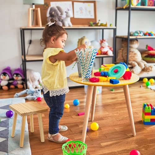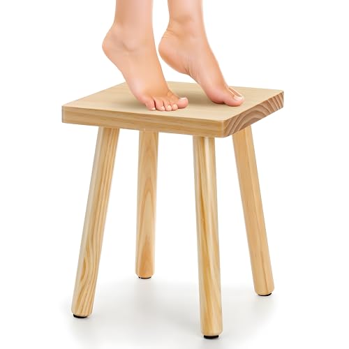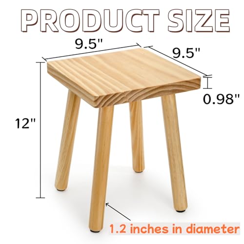 Goaste - مقعد خشبي 9.5 انش من غوست، مقعد جلوس مربع صلب للبالغين والاطفال، كرسي قصير متعدد الاغراض طاولة حسية متطابقة مثالية، مقعد مسند قدم صغير بـ4 ارجل لغرفة اللعب والمطبخ وغرفة النوم