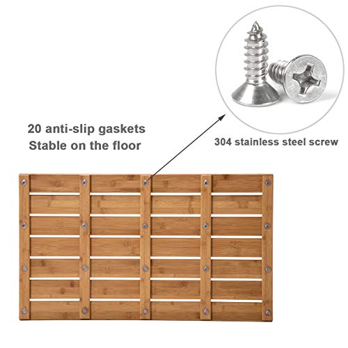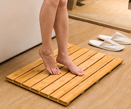 - ★ FUNCTIONAL AND VERSATILE: Use bamboo mat by showers and bathtubs or as a decorative piece; Its versatile design makes it nice for outdoor showers, no need to track sand and dirt inside.