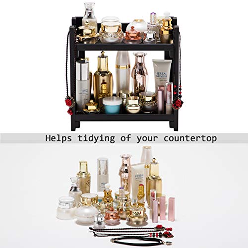 GOBAM - GOBAM Bamboo Makeup Organizer, Black Vanity Storage Box, Multi-Purpose Storage for Skincare, Toiletries and Desktop, 2-Tier Cosmetic Organizer Shelf for Bathroom, Countertop, Kitchen, Office