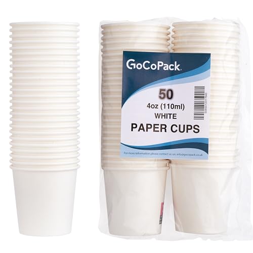 GoCoPack - أكواب ورقية من جوكوباك: عبوة 50 كوب ورقي أبيض صغير سعة 110 مل