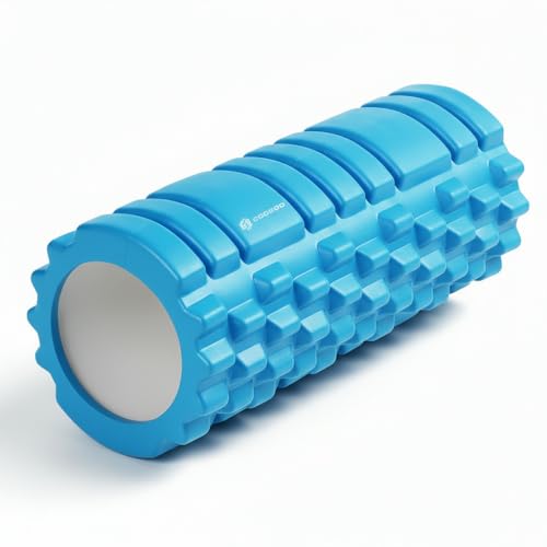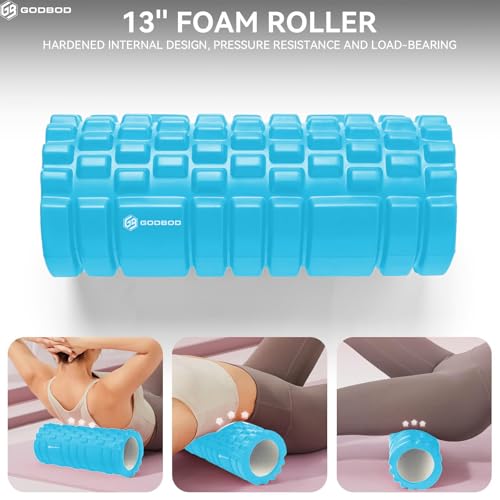 GODBOD - أسطوانة تدليك من الفوم عالية الكثافة للأنسجة العميقة وتدليك العضلات والتعافي وتخفيف الألم ونقاط التحفيز واسترخاء اللفافة العضلية للرياضيين والجيم والعلاج الطبيعي من جودبود، 33×12.7 سم، أزرق سماوي