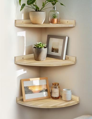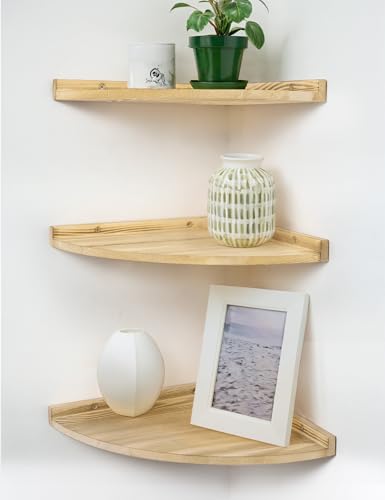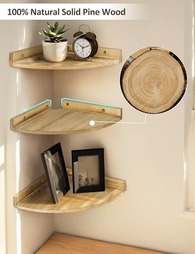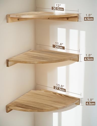 - 【خامة فاخرة】: أرفف الزوايا العائمة مصنوعة من خشب الصنوبر الصلب بنسبة 100% ودعامات متينة. كل رف زاوية خشبي يمكنه حمل ما يصل إلى 11.3 كجم.
