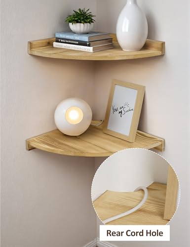 Godimerhea - رفوف زاوية للتثبيت على الحائط بتصميم ريفي حديث مع فتحة للكابلات مصنوعة من الخشب لتخزين وتنظيم الزوايا في المطبخ أو الحمام أو غرفة المعيشة أو النوم أو الغسيل من جوديميريا، مقاس 30.5 × 30.5 سم