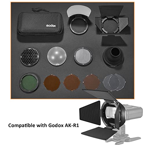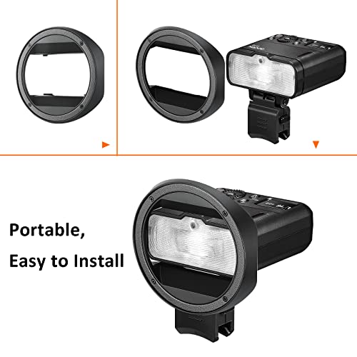 - Attaching the round adapter onto the square-shaped flash head, you'll get a round mount that is compatible with the Godox AK-R1 Accessory Kit, which can control the beam, soften the light and change the light colors.
