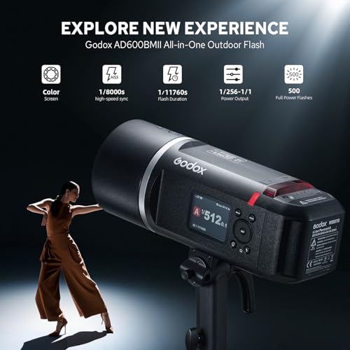- Studio Light: AD600BMII power up to 600Ws, flash index GN87, full power flash 500 times, supports 1/8000 second high-speed synchronization