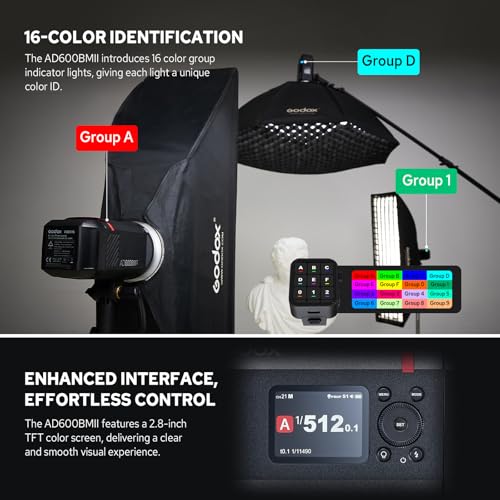 - Wireless Control: AD600BM II has a built-in 2.4G wireless X system, compatible with Godox XproII, X2T, X1 flashers; AD600BM II Integrated X3 Flash Trigger One Click Synchronization Function