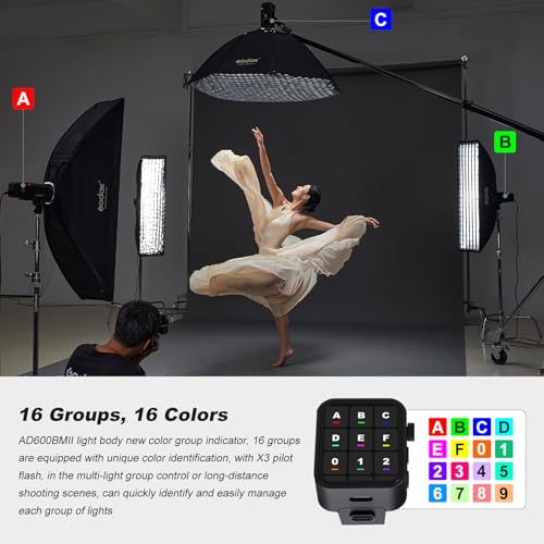 - مجموعات لونية لإدارة ضوء دقيقة: يتميز فلاش AD600BMII من جودوكس بمؤشرات ضوئية للمجموعات اللونية، حيث يدعم 16 مجموعة لكل منها رمز لوني مميز. وباستخدامه مع مشغّل X3، يمكن تحديد كل مجموعة بسرعة وإدارة الإضاءة بسهولة في إعدادات التصوير متعددة الأضواء أو أثناء التصوير من مسافات بعيدة.