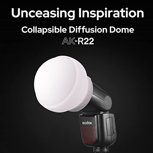 GODOX - قبة توزيع اضاءة AK-R22 من جودوكس، قابلة للطي ومصنوعة باستخدام مادة السيليكون، رأس جودوكس دائري AD100PRO وAD200PRO (مع H200R)، لسلسلة فلاش الكاميرا V1 من جودوكس