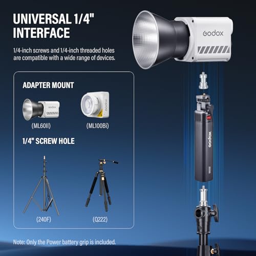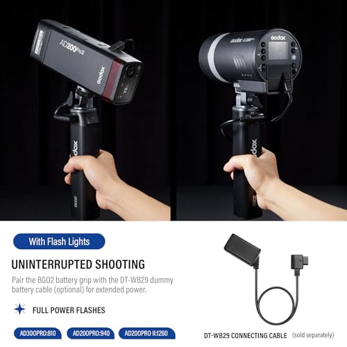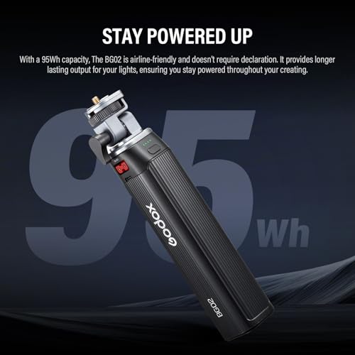 - 【95Wh Capacity for Travel】GODOX BG02 Battery Grip adopts imported batteries with a capacity of 95Wh, which can provide a comfortable and durable power supply for lighting equipment. In addition, the BG02 supports fast charging and complies with air transport standards, so you don't need to declare boarding.