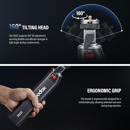 - 【One-piece compact body ergonomic design】GODOX BG02 adopts the one-piece battery design combined with the handle,which is ergonomic and conforms to the shape of the hand,ensuring a stable and comfortable grip for long time shooting.
