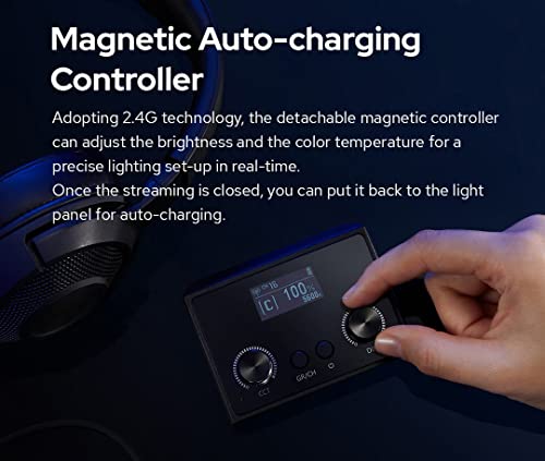 - جهاز تحكم عن بعد مغناطيسي للشحن التلقائي: يعتمد على تقنية 2.4G، يمكن لجهاز التحكم عن بعد المغناطيسي القابل للفصل ضبط السطوع ودرجة حرارة اللون لإعداد إضاءة دقيق في الوقت الفعلي. بمجرد إغلاق البث، يمكنك إعادته إلى لوحة الإضاءة للشحن التلقائي