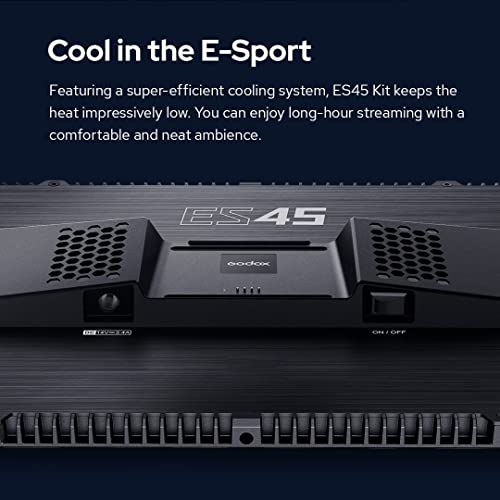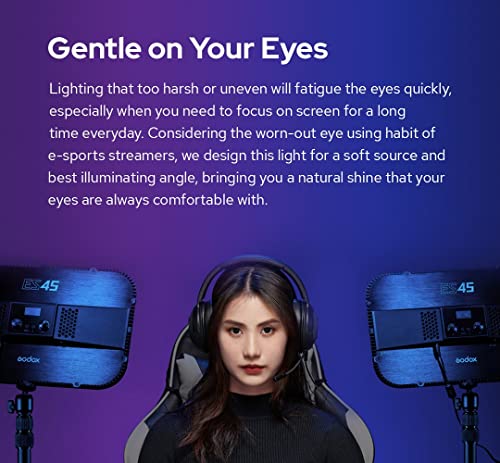 GODOX - مصباح مفتاح ES45 من جودوكس، مصباح ليد لتصوير الفيديو مع حامل مكتب قابل للتمدد، إضاءة ليد رياضية إلكترونية بدوران 360 درجة لبث مقاطع يوتيوب تيك توك، سطوع 0-100% تعديل درجة حرارة اللون 2800-6500 كلفن
