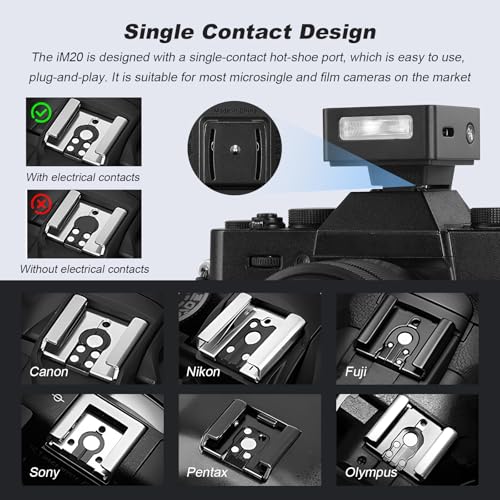 - 💚【مثالي للمصورين الصغار وخفيف الوزن】فلاش الكاميرا الصغيرة جودوكس iM20 صغير الحجم وخفيف الوزن للاستخدام مع سوني/كانون/فوجي فيلم/ريكو، ويعمل بشكل رائع مع عدسات بان كيك أو العدسات المدمجة الأخرى. يرجى ملاحظة ما يلي: عند استخدامها مع العدسات الكبيرة أو أغطية العدسات، قد تظهر الظلال على الهدف بسبب موضع الفلاش. للحصول على أفضل النتائج، نوصي باستخدام هذا الفلاش مع عدسات أصغر!