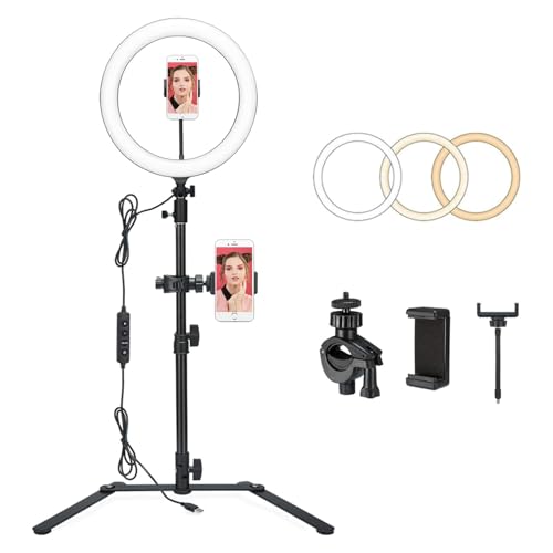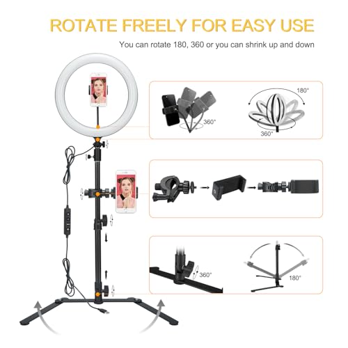- 🍀 تصميم 2 في 1 يجمع بين حامل الموبيل ومصباح حلقة السيلفي معًا، وهو أداة احترافية لإنشاء مقاطع فيديو مباشرة/تسجيل باستخدام الموبيل الذكي أو الكمبيوتر. إضاءة إضافية مثالية للمكياج والبث المباشر ووضع صور السيلفي والتصوير وتسجيل الفيديو والتعليم عبر الإنترنت ومدونات الفيديو ذات المناظر المظلمة وما إلى ذلك.