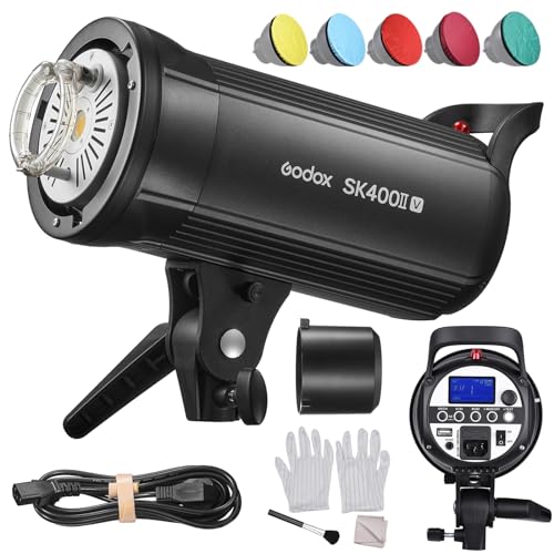 GODOX - ضوء فلاش ستوديو Godox SK400II-V بقدرة 400Ws، قاعدة Bowens، حرارة 5600±200K، نظام لاسلكي 2.4G X مدمج، مع مصباح ليد للمعاينة، مثالي لبورتريه الزفاف، وتصوير الأزياء