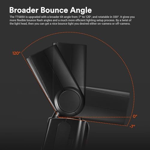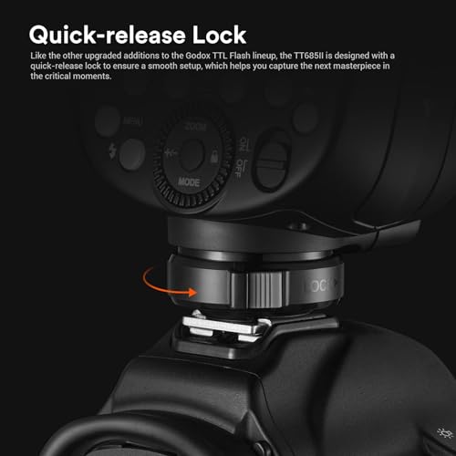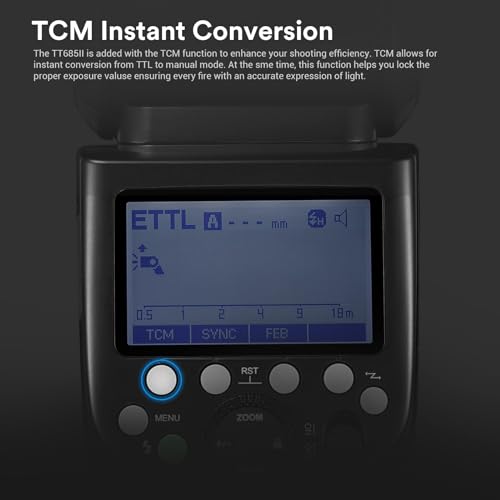 - Add TCM function: Godox TT685II Canon allows for instant conversion from TTL to manual mode, helps you lock the proper exposure value ensuring every fire with an accurate expression of light, enhance shooting efficiency