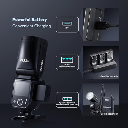 - 100Ws Maximum Power Output: The Godox V100-C is a high-performance TTL Li-ion Round Head Camera Flash with an impressive 100Ws power output, setting a new standard for on-camera flash capabilities