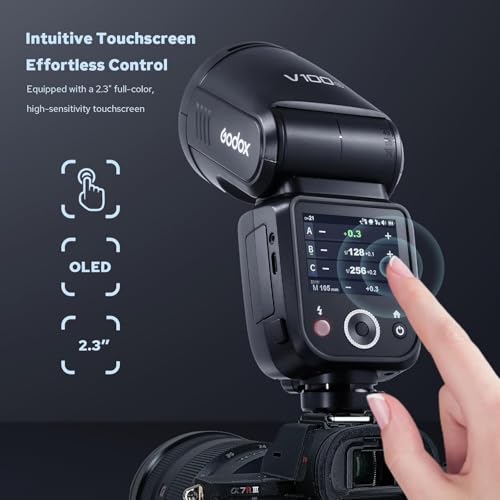 - Advanced Touchscreen Interface: Featuring a 2.3-inch full-color, high-sensitivity touchscreen, Godox V100-C offers an intuitive and responsive control system for quick adjustments and efficient workflow