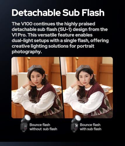- وظائف شاملة ومستقرة: يتميز فلاش V100 بوظيفة الفلاش اليدوي والوميض ومزامنة عالية السرعة ومزامنة الستارة الخلفية وتعويض التعرض للفلاش والوظائف الاحترافية الأخرى. مجهزة بعدسة دائرية لضمان إضاءة متساوية وخفيفة الوزن وقابلة للتعديل بقدرة 2 واط وإضاءة LED قابلة للتعديل من 1 إلى 10 قطع.