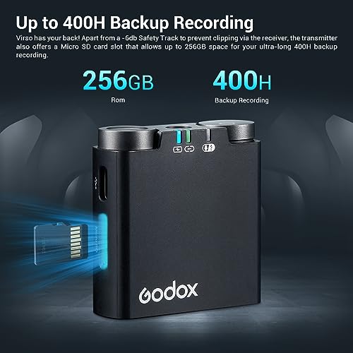 - 【تسجيل احتياطي يصل إلى 400 ساعة】تدعم فيرسو! بصرف النظر عن مسار الأمان -6 ديسيبل لمنع القص عبر جهاز الاستقبال، يوفر جهاز الإرسال أيضًا فتحة بطاقة مايكرو اس دي (بطاقة اس دي غير متضمنة) تسمح بمساحة تصل إلى 256 جيجابايت لتسجيل النسخ الاحتياطي طويل للغاية 400 ساعة.