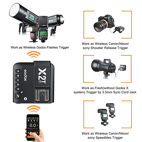 - Bluetooth function: X2T can be connected via mobile phone or tablet app to adjust the flash mode, power size, modeling light, buzzer and so on.