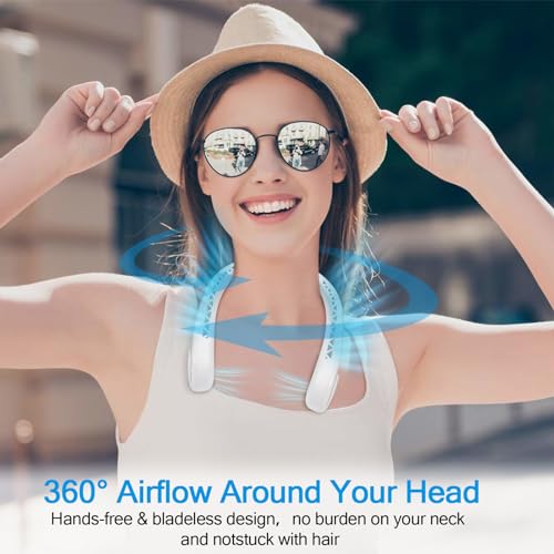 - ✔️تصميم سماعة رأس دون الحاجة للإمساك: هل تعاني في درجات الحرارة المرتفعة؟ هل تأخذ معك مروحة محمولة عند خروجك من المنزل؟ لماذا لا تستخدم مروحة الرقبة بدون ريش لتهدئة حرارتك؟ لا تضيف وزنًا زائدَا على رقبتك. حرر يديك واستمتع بتدفق هواء حر 360°.
