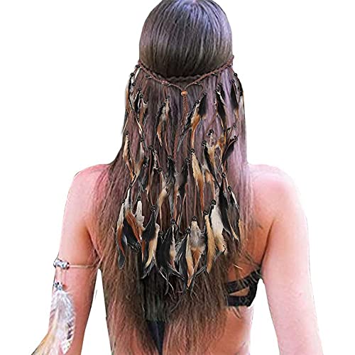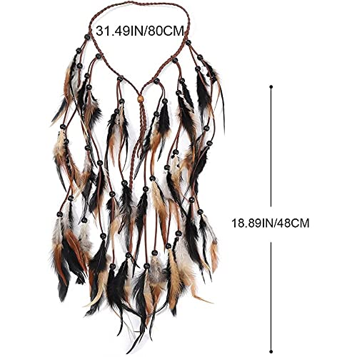 gofidin - شريط رأس ريش بوهو قابل للتعديل مقاس 48 سم بتصميم طاووس هندي غجري، اكسسوارات شعر مصنوع يدويا من الريش من جوفيدين
