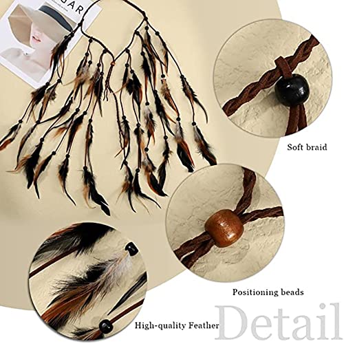 - شريط ريش الشعر مصنوع من الريش والخرز الخشبي والجلد الصناعي. اللون كما هو موضح في الصورة.