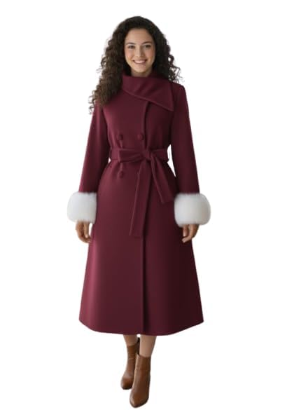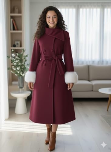Generic - Gogh Fur Sleeve Coat - Imported High Quality Materials - Collection 2026 - One Size Suitable From Weight 60 To 70K Different Colors (Maroon)