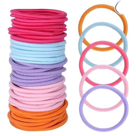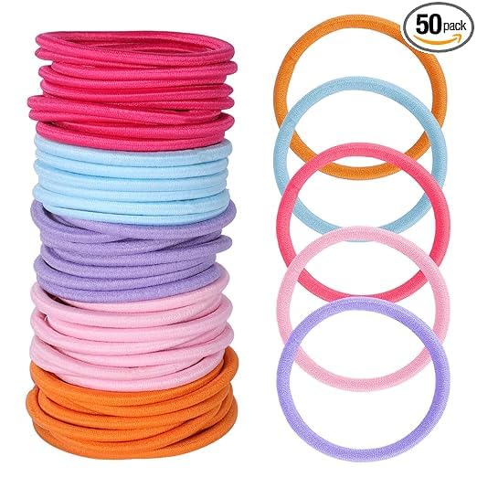 - Complete Set: Package includes 50 soft fabric hair elastics in vibrant multicolour options including pink, light blue, purple, light pink, and orange for versatile styling choices