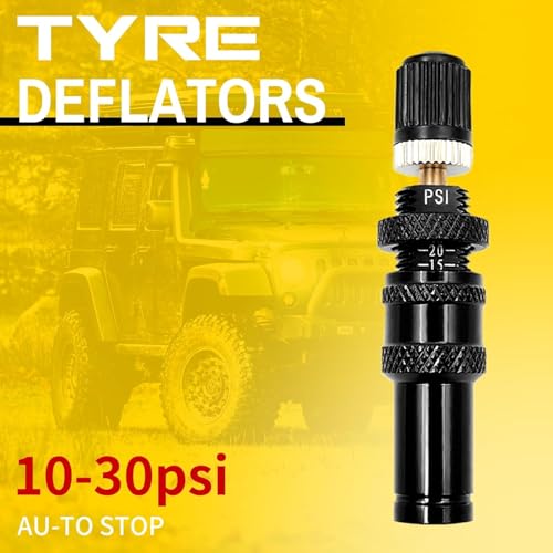 - Auto-stop tire deflator valve kit: Just twist the deflator housing (where the logo is located) and start deflating. When the tire reaches the preset pressure, the valve will automatically close to avoid excessive deflation or the need to continuously monitor pressure. This can save time and effort, while ensuring that the tires always remain within the correct pressure range.