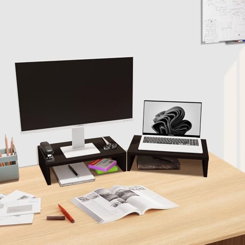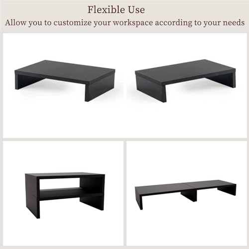 GOKHOMX - 2 Pack Wooden Monitor Riser, PC Monitor Riser Stand for Desktop Laptop Monitor Stands Wooden (36 x 24 x 8.5 cm, Black)