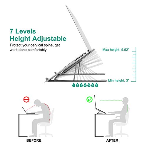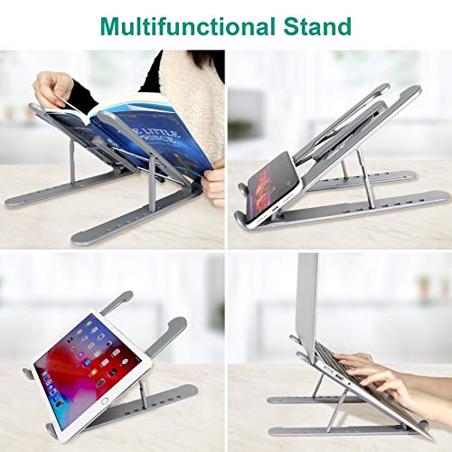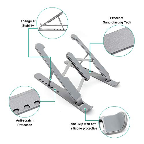 GOKOTTA - GOKOTTA Laptop Stand, Adjustable Aluminum Laptop Holder Riser, Foldable Portable Computer Laptop Tablet Stand with 7 Angles Adjustable Compatible with All 10-15.6in Laptops (Space Gray)
