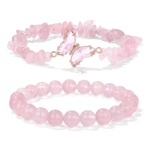GolbalJew - GolbalJew Amethyst Bracelet For Women Anxiety Amethyst Beaded Bracelets Butterfly Charms Healing Stone Layered Bracelet Gifts For Women