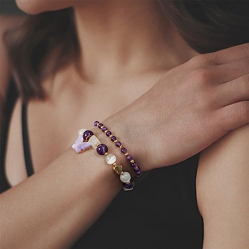 GolbalJew - GolbalJew Natural Amethyst Bracelet for Women Healing Crystal Stone Bracelets Purple Gemstone Beads Stretch Bracelet Butterfly Charms Jewelry Women Girls Gift, Stone, Amethyst