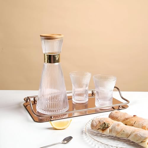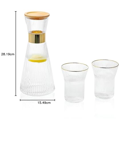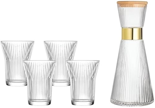 - Includes one elegant pitcher, four matching glasses, and a bamboo tray with a sturdy base, offering a complete, harmonious serving experience for home or entertaining guests.