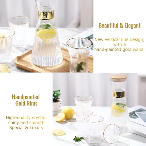 Generic - Gold-Accented Crystal Pitcher - Ribbed Glass Set with Leakproof Lid & 4 Food-Safe Cups, 1L Perfect for Daily Use