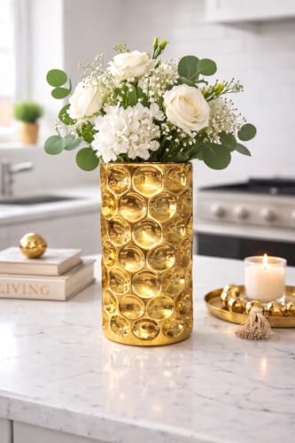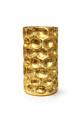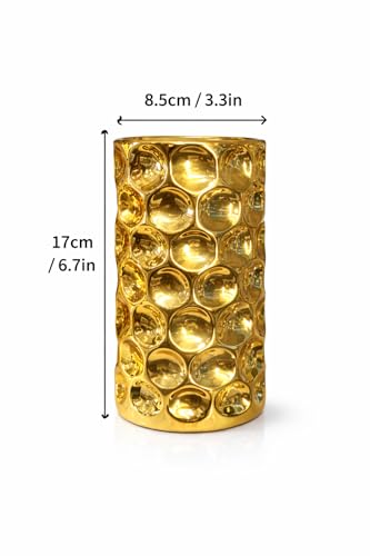 Generic - فازة ديكور خزفية ذهبية بتصميم فقاعات عصري، 17 سم × 8.5 سم، أسطوانية لامعة للزهور والديكور المنزلي