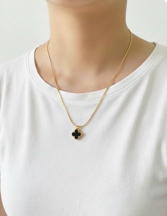 GOGO.EG - Gold Chain Necklace with BlackPendant, Leaf Design-YF33