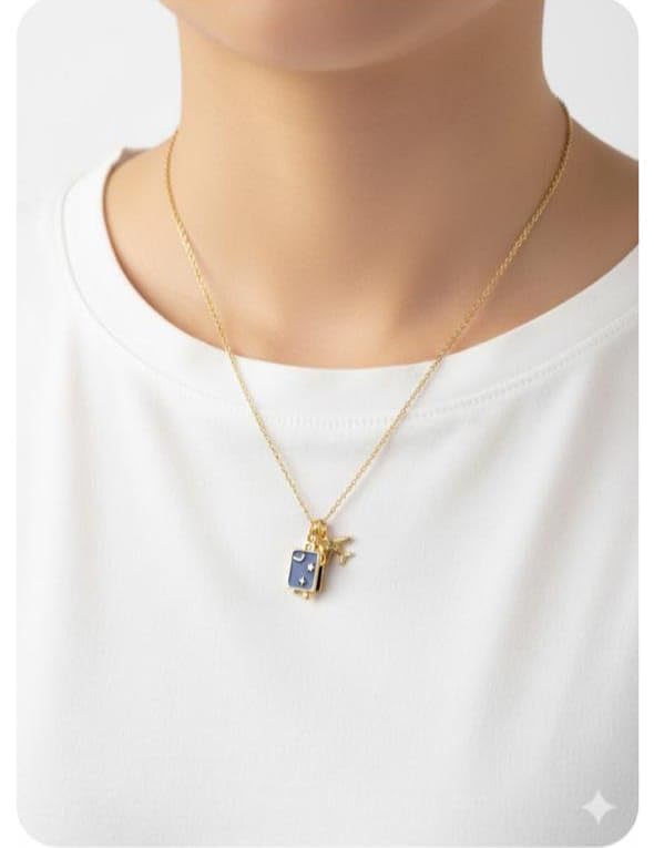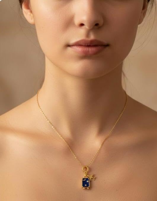 GOGO.EG - Gold Chain Necklace with Blue Pendant and Star Charm, Delicate Layering Jewelry-YF9