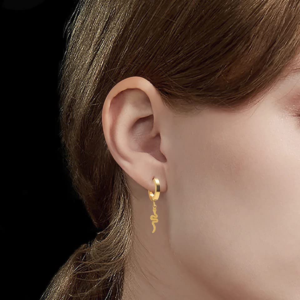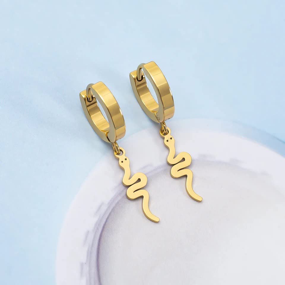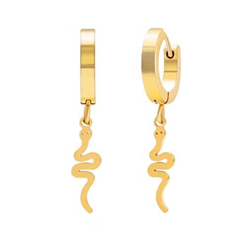 Generic - حلقان بيرسينج دائرية قوطية من الستيل بحلية بتصميم ثعبان للنساء مناسبة كهدية - لون ذهبي, Small, ستانلس ستيل