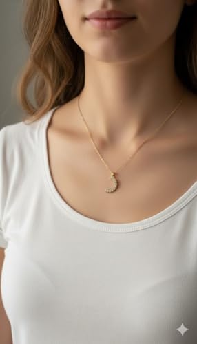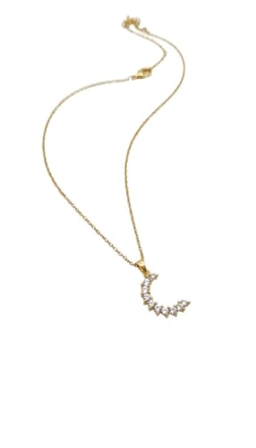 Generic - سلسلة بتعليقة على شكل هلال مع أحجار كريستال، سلسلة مجوهرات بدلاية بلون ذهبي
