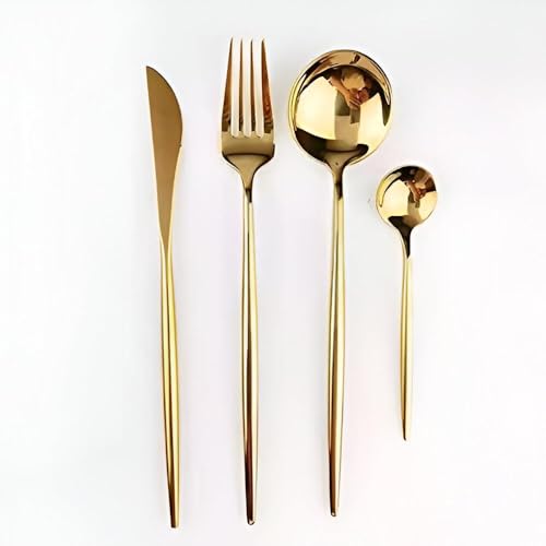 Generic - Gold Cutlery Set - Full Service Set of 4 Stainless Steel with Large Spoon, Teaspoon, Large Fork, Knife for Elegant Dining