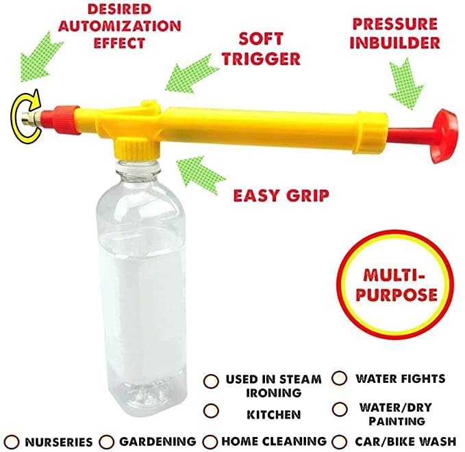 - متعددة الأغراض: يستخدم على نطاق واسع في الحدائق/دور الحضانة لري النباتات ورش المياه والبونساي. يساعد في تنظيف الغبار منها أيضًا. معروف باستخدامه المكثف في المطبخ وقسم المنزل. له استخدام كبير في الكي بالبخار. مناسب لرش المبيدات الحشرية. يساعد بشكل كبير في إزالة البقع على الدراجات والسيارات. مثالية للرسم المائي والجاف، والاستخدامات السيارات/البحرية، والتبريد، كما أنها مفيدة للغاية لمعارك المياه أيضًا. خاصة في فصل الربيع