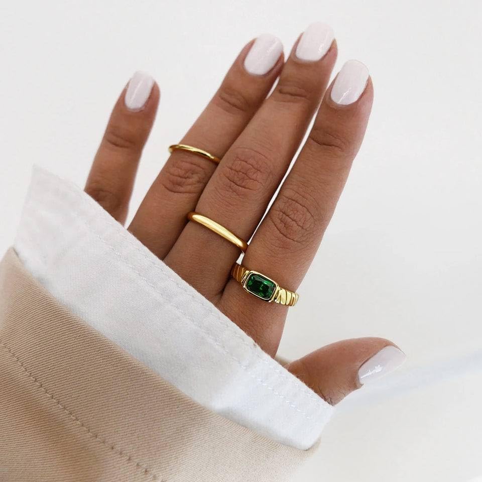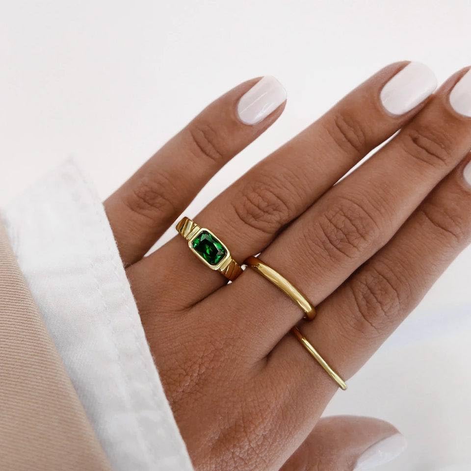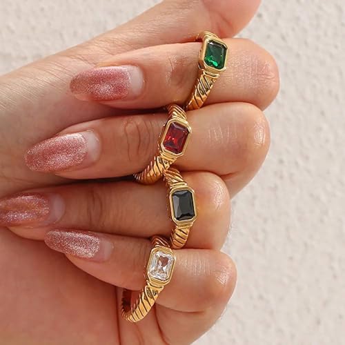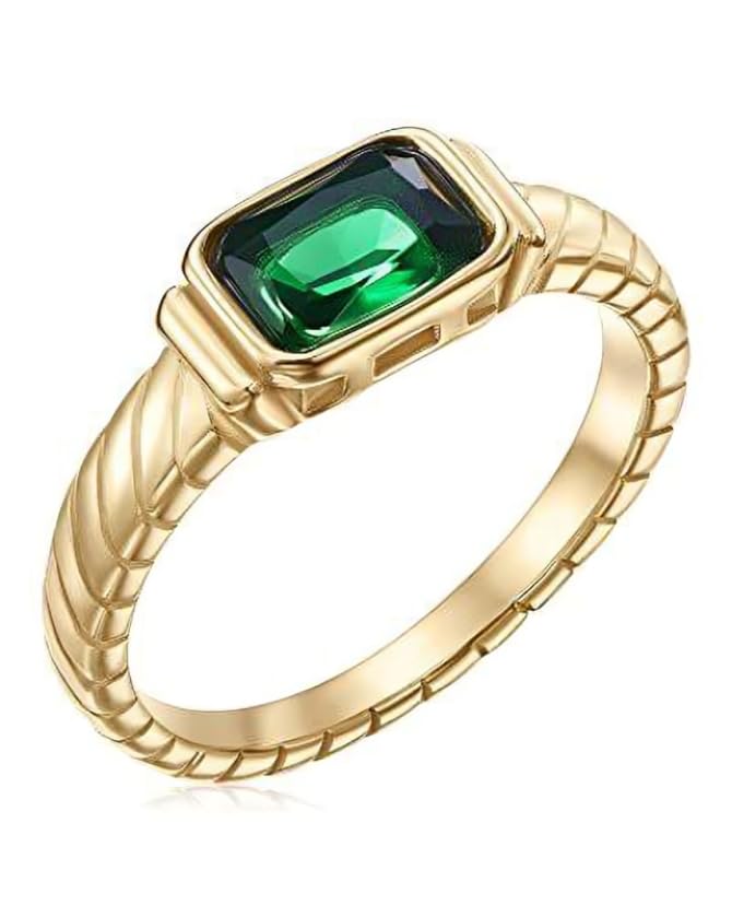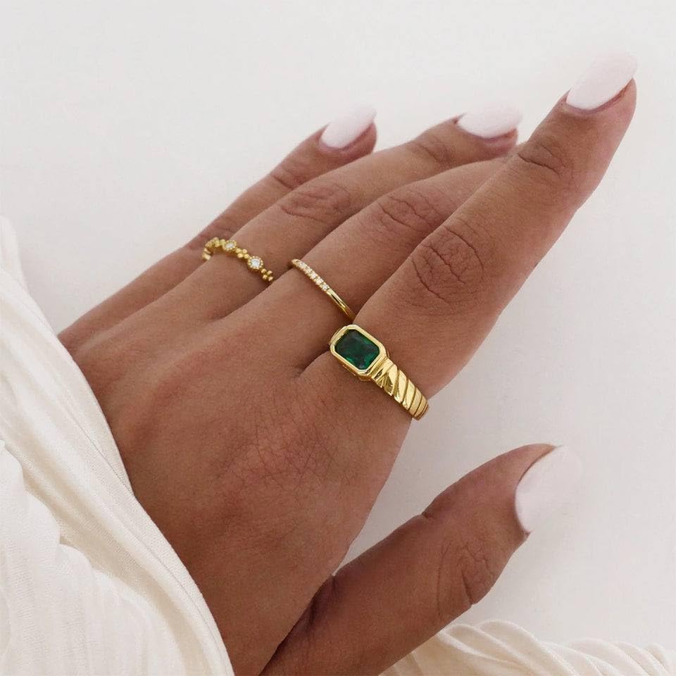 Generic - Gold Emerald Rings Gold Rings for Women Dainty Green Rings Cut Emerald Gemstones CZ Non Tarnish Gold Color Rings for Women Band