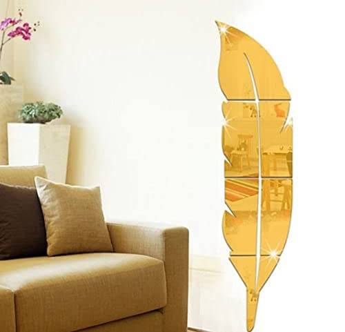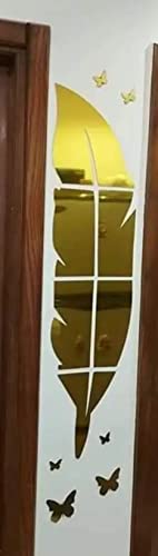 Generic - مراة على شكل ريشة ذهبية محاطة بفراشات ذهبية قابلة للصق والازالة ومقاومة للمياه والخدش