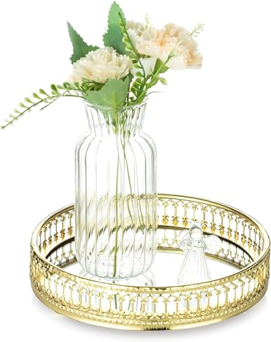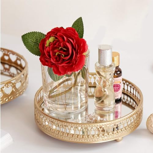 Generic - صينية بمرآة زجاجية ذهبية مزخرفة مع مرآة معدنية لتنظيم المجوهرات ومستحضرات التجميل والعطور والفواكه للحمام من فلامنجو