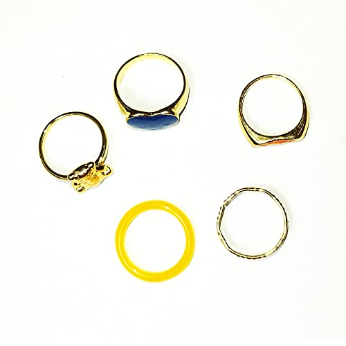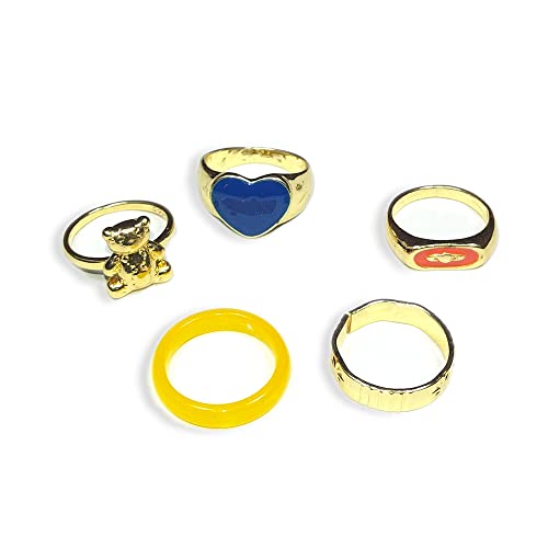 Generic - Gold Heart & Bear Design Ring Set for Women - 5 Pieces