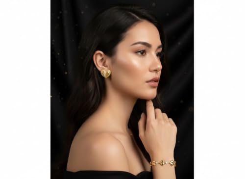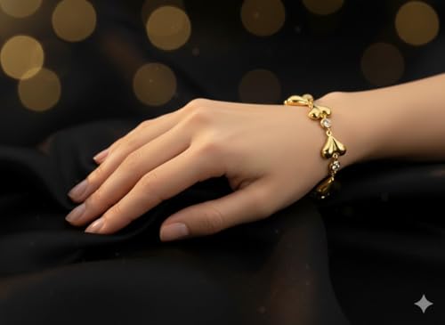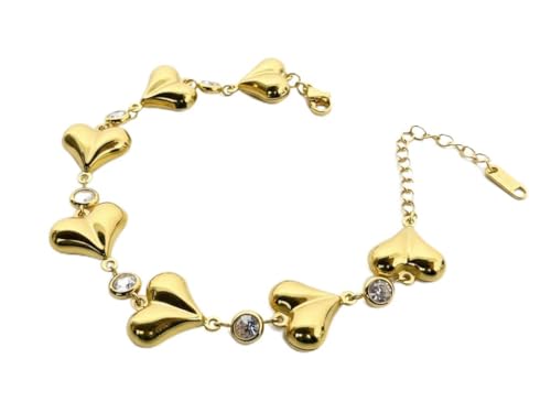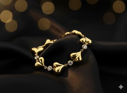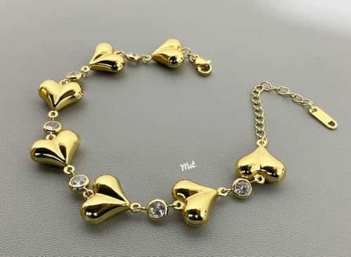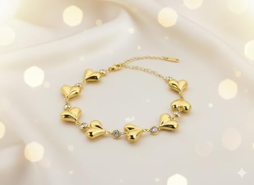 Generic - Gold Heart Bracelet for Women & Girls, Anti Tarnish Bracelet Love Heart, Stainless Steel Gold Bracelet Stylish Hand Accessories Jewellery for Girls Valentine Day, Friendship