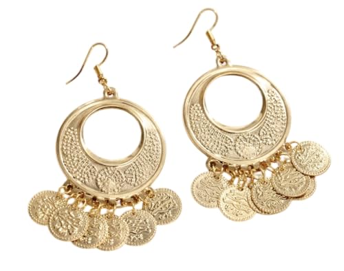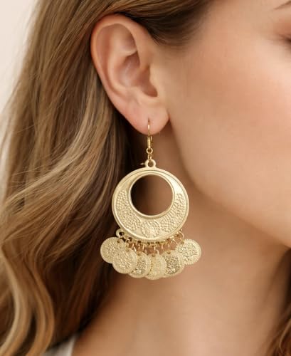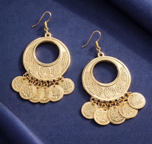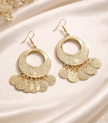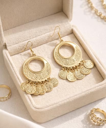 Generic - اقراط حلقية ذهبية مع حليات على شكل عملات معدنية، دلاية دائرية مزخرفة بتصميم بوهيمي